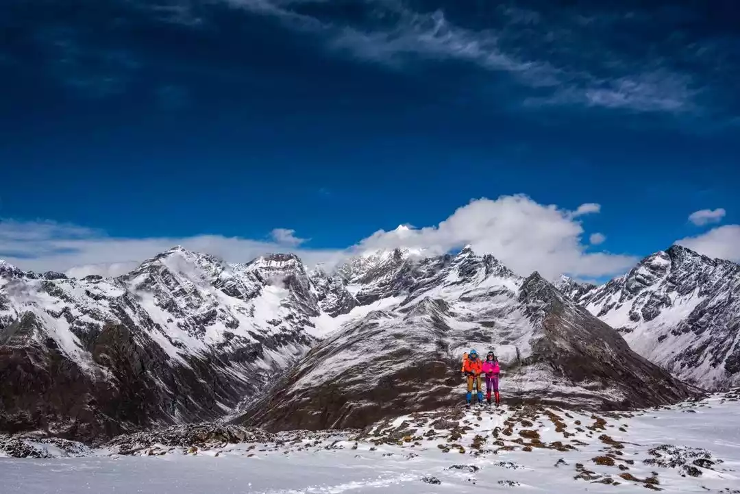 The scenery of Haizigou, Rhino Sea and the east wall of Yaomei Peak. Set off after breakfast and continue hiking towards the depths of Haizigou. Today's camp is at Rhino Sea at an altitude of 4,300 meters, which is also the end of Haizigou. When the weather is fine, you can see the rare east wall of Yaomei Peak.