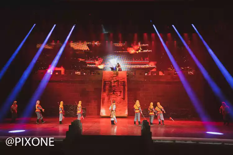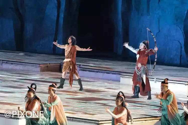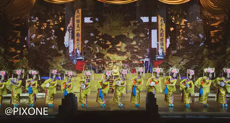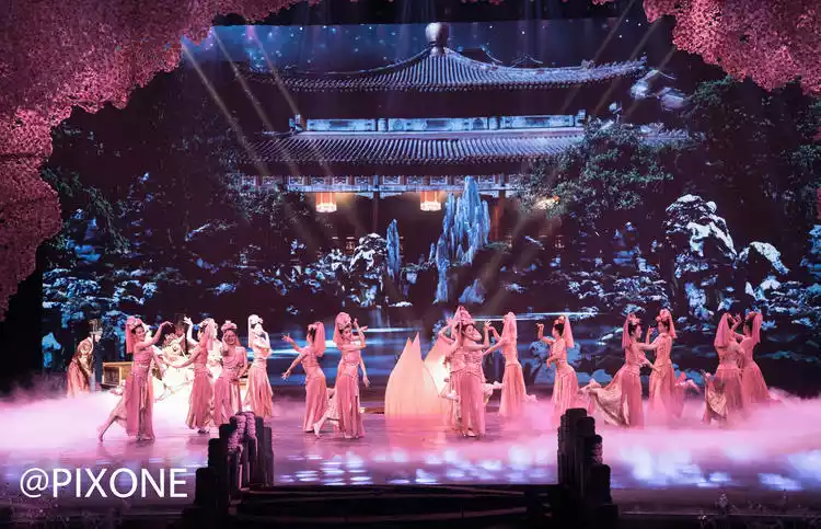The 40-minute show, with a cast of approximately 140 people, incorporates dances from diverse ethnic groups and styles, including Mongolian, Tibetan, Xian, Xinjiang, tea-picking, Japanese, Persian, court, Miao, and Han dances. It also features stilt walking, thrilling acrobatics, and a magic show called "Beautiful Women Transformation."