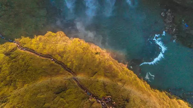 After walking for about 10 minutes following the sound of water, we saw the waterfall. On the trail going down the mountain, everyone couldn't help taking photos and group photos on the trail, so that the trail was always blocked. This shows the attraction of the Doupotang Waterfall.