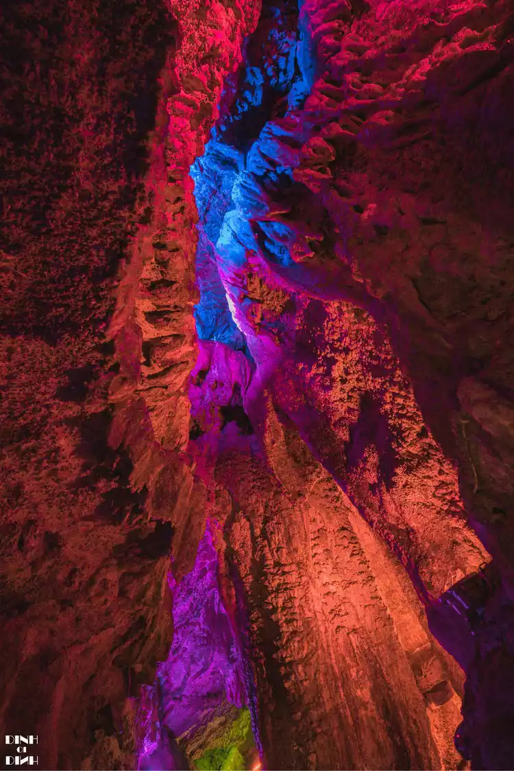 There is also a small section in the Water Curtain Cave with lighting effects. As the colors of the lights change, the scenery in the cave also changes.