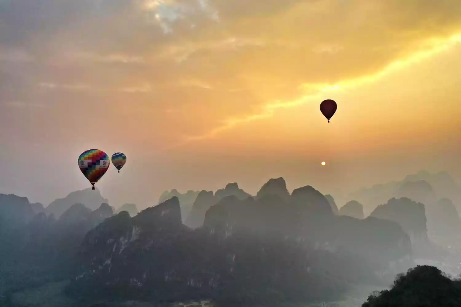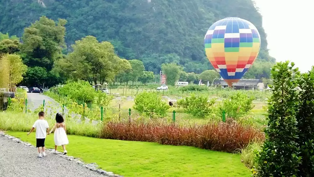 Take a hot air balloon, float above the world of peaks and forests, and have a panoramic view of the unique scenery of the entire Yingxi karst landform, which is absolutely breathtaking.