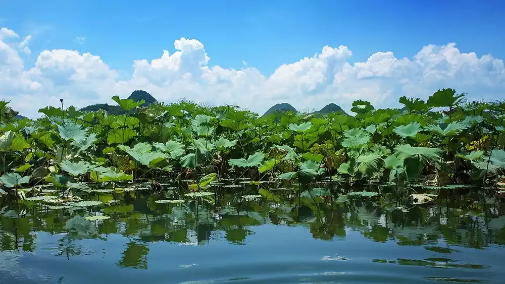 Jiulong Town is home to 300 acres of lotus flowers, including four-season lotus, fragrant water lily, giant water lily and other varieties.