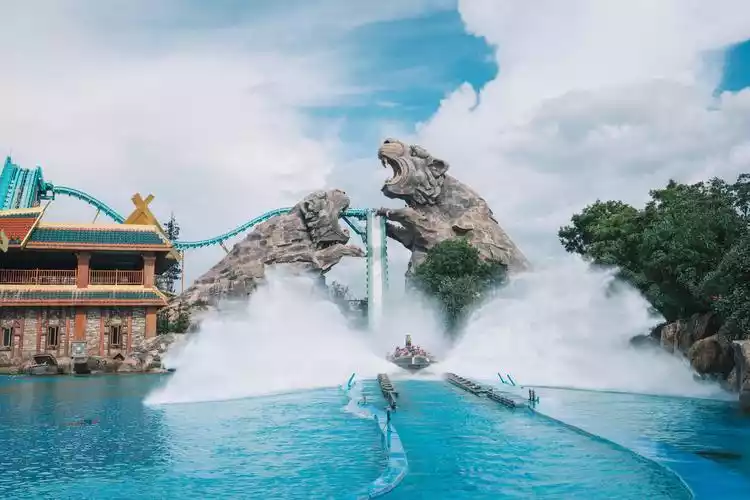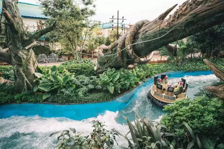 Two huge rockeries shaped like tigers and a steep water slide offer the thrill and pleasure of crazy backslides and high-speed dives. Rush through the rapids of Tiger Leaping Gorge, fall into the pool from a height, and release your stress.