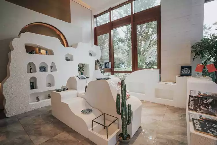 Mr. Luo Xu, who used to be a ceramic worker, is deeply grateful for the inspiration he received from that experience. There are many ceramic artworks stored in the exhibition hall of the Ant Workshop. The walls are also built with hollow bricks. Light shines into the hall through the holes, making the exhibits lively.