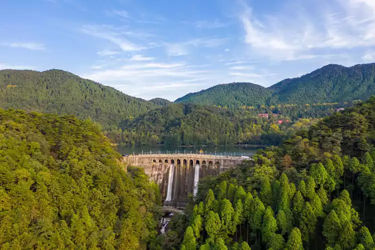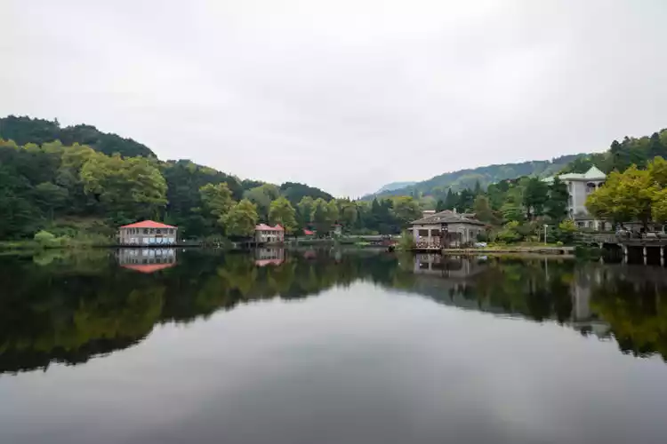 After arriving at Lushan, on the way up the mountain to Yunjing Hotel in Guling Town, we passed Lulin Bridge and Lulin Lake. Lulin Bridge is a bridge and dam in one, blocking the water to form a lake, and the lake water is like a mirror.