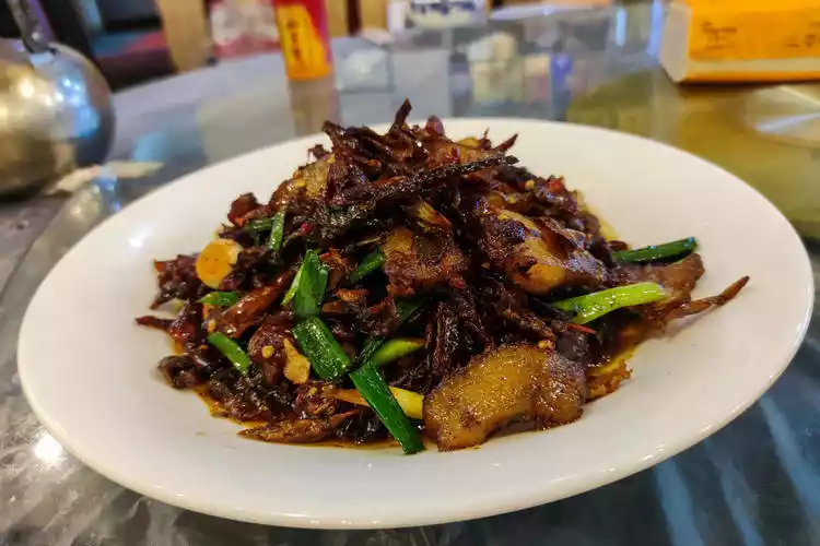 Liangjianglou is a local restaurant opened by locals. Their fried pork with chili peppers is really delicious. The chili peppers are cut into slices and then dried, and paired with fatty pork belly. It can be eaten with several bowls of rice.