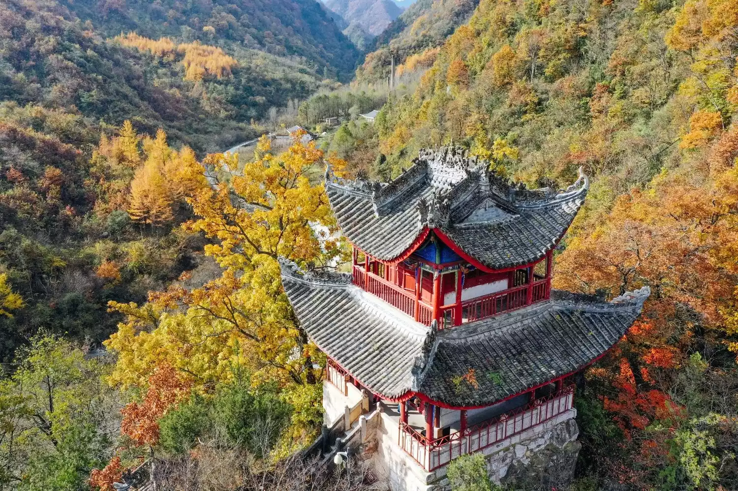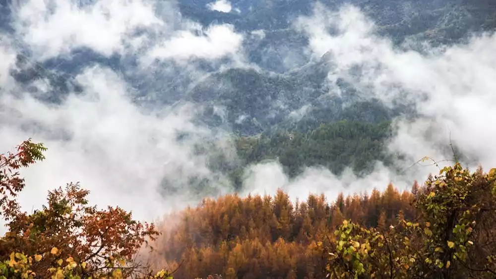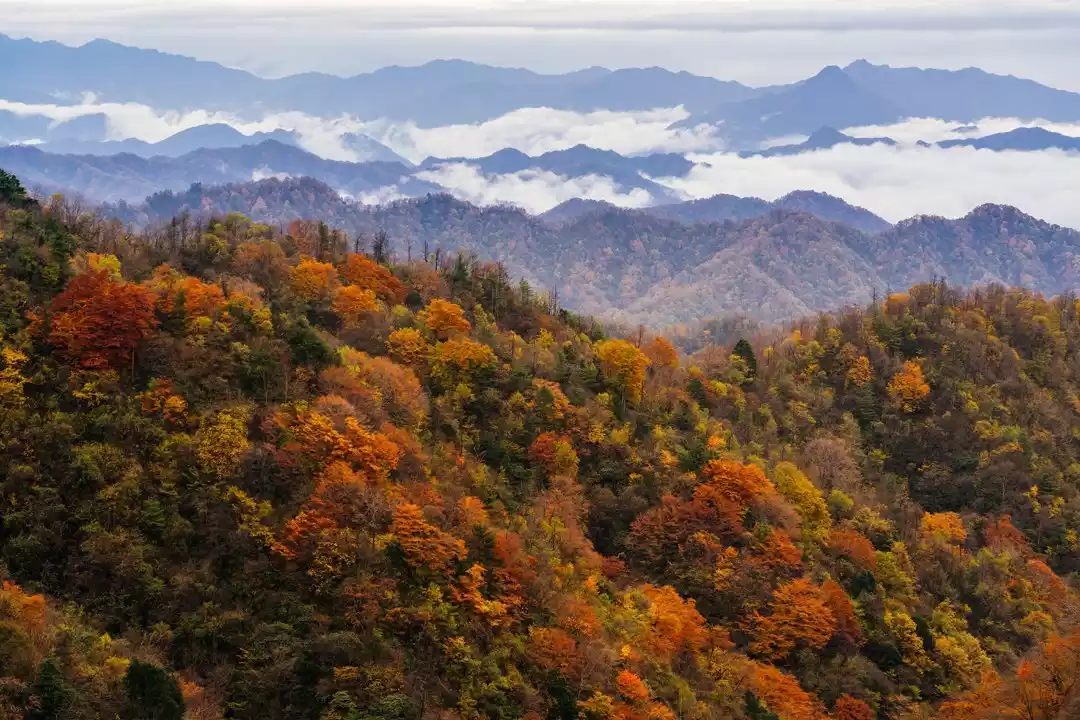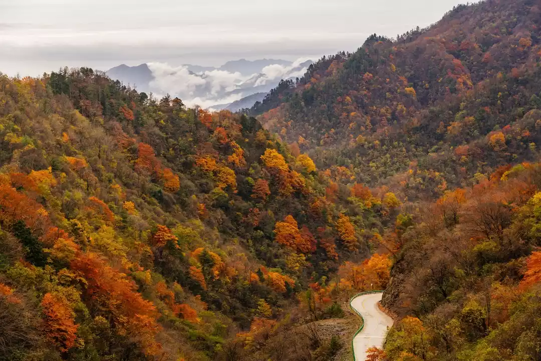 Due to the unique terrain of the Qinba Mountains, the autumn colors here always come later than in other places. From August to September every year, cold air from Siberia begins to move south in large numbers, targeting the warm and humid air currents across China. When the cold air reaches the foot of the Qinling Mountains, it finds that its way forward is blocked by the Qinling Mountains.