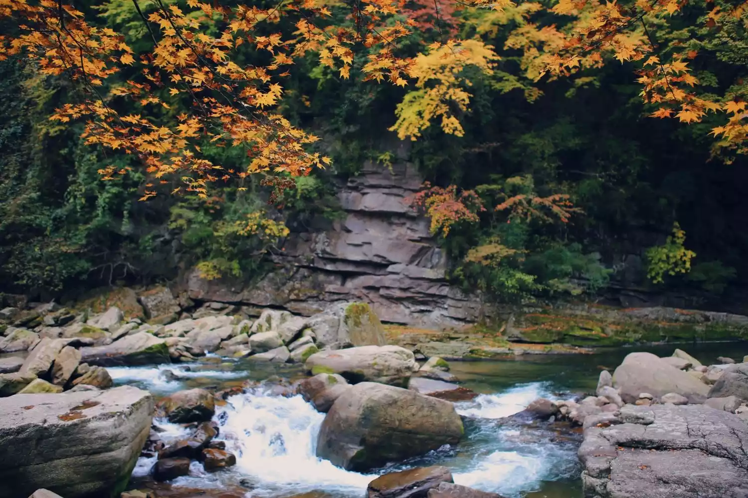The full name of Guangwu Mountain is "Nuoshui River National Geopark", which consists of five major scenic areas: Taoyuan, Dam, Eighteen Moon Lake, Shenmen Cave, and Xiaowu Gorge. Dam and Eighteen Moon Lake are must-visit scenic spots for viewing red leaves.