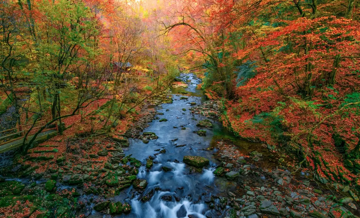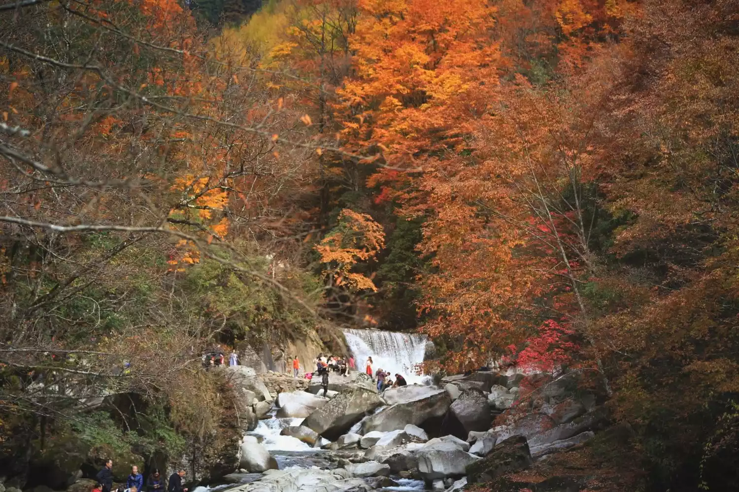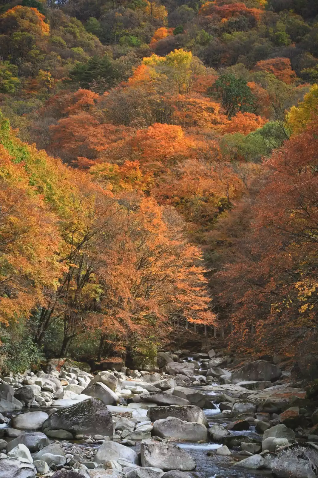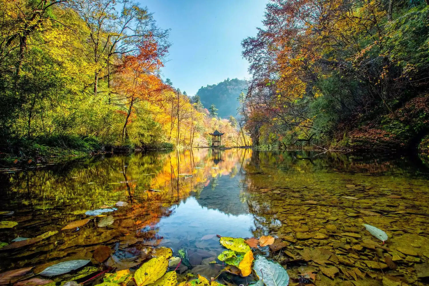 The red leaves, which account for 70% of the entire scenic area, are all over the mountains and are dazzling. More than 40 different species of trees will compete to burst out with the most eye-catching colors. The layered scenery of yellow, red, orange, green, blue, etc. forms a kingdom of colors!