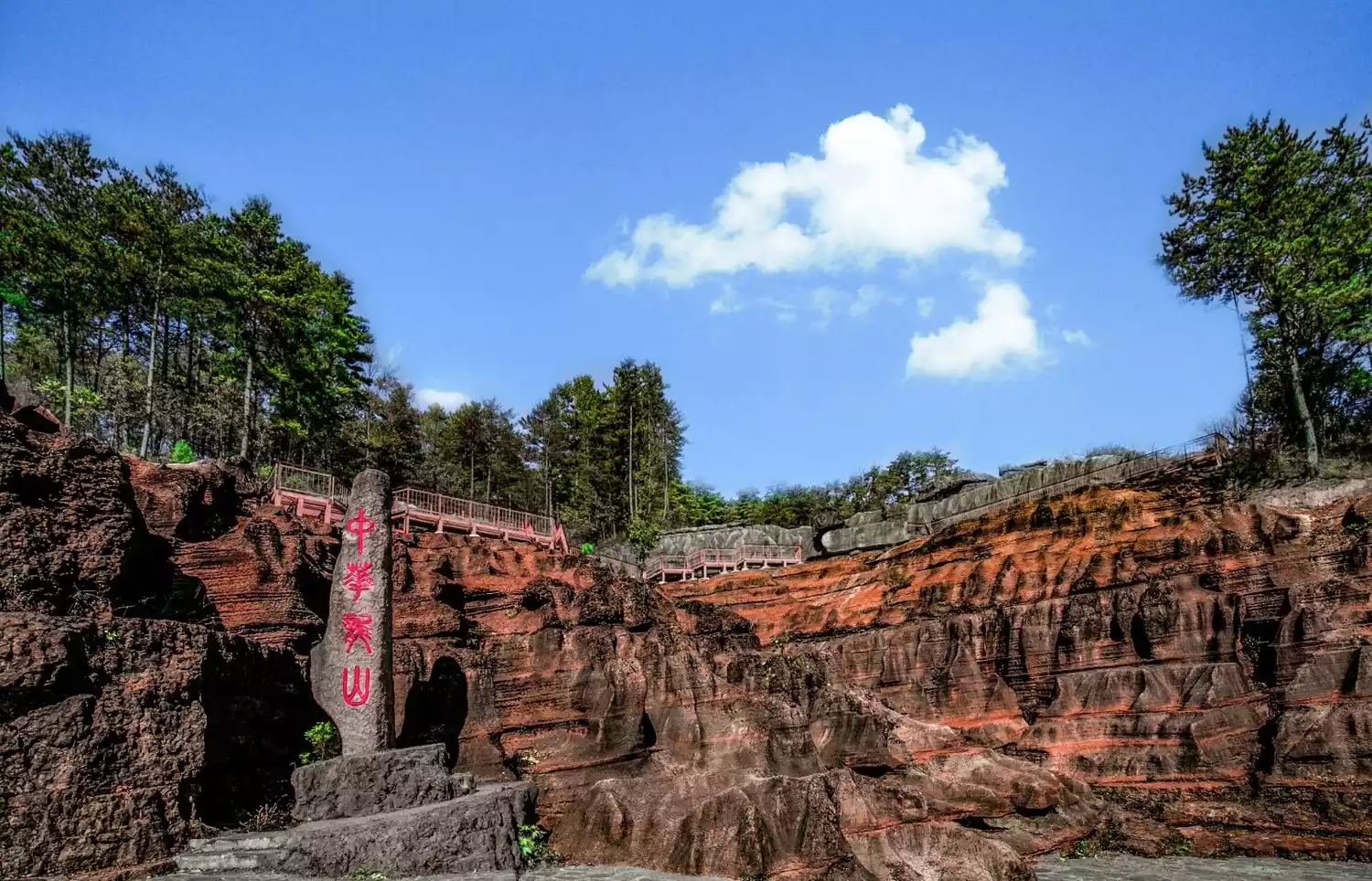 The 2008 Wenchuan earthquake shook open a mountain in Liping, and people discovered a peculiar mountain. The mountain was formed 400 million to 500 million years ago and is reddish-brown in color. Many animal fossils were found in these stones. This kind of landform can only be found here, and it was named "Zhonghua Longshan".