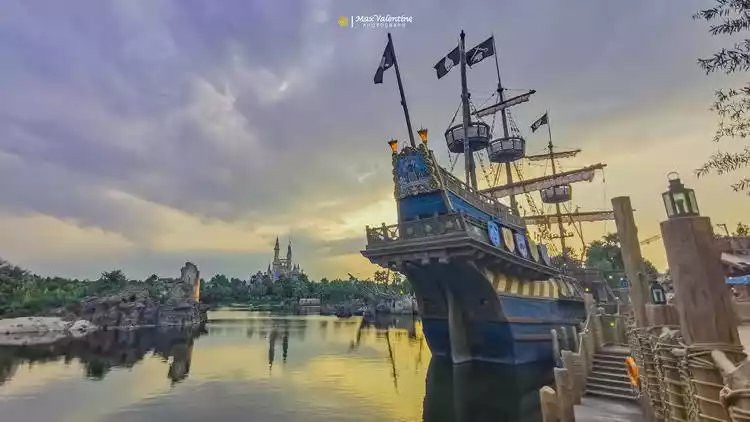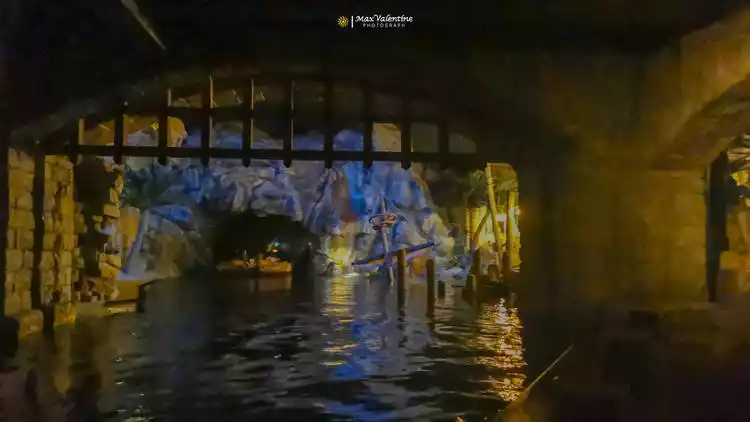 It can be used as the second stop. You can sit on the boat and let the gears drive the boat. It is another naked-eye 5D project. Especially when the pirate ship rises, it makes people feel as if they are rising. There is no particularly scary scene, but the props and effects along the way are very delicate and realistic. Sitting in the middle will not spray water, and the shore feels closer to the surrounding scenery paintings.
