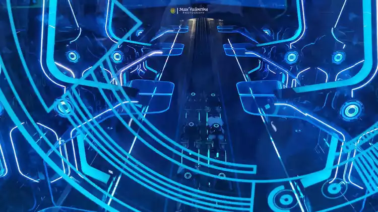At the exit of Lightcycle Speed, concept cars and simulators are displayed to meet the needs of checking in with a sense of technology.