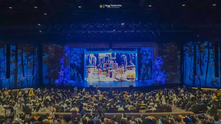 The singing extravaganza usually has more than 4 shows a day, and there are many shows, but people are accommodated according to their seats. Frozen is a musical, and it focuses more on the interaction between children and the characters in Frozen.