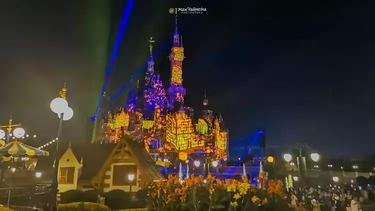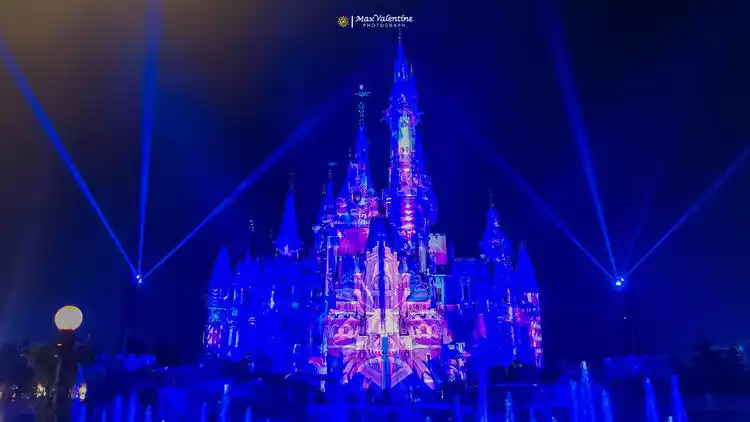After the evening fireworks, it was the end of Disney. The castle gradually returned to its original pink color, but the park still played familiar Disney musicals slowly and softly.