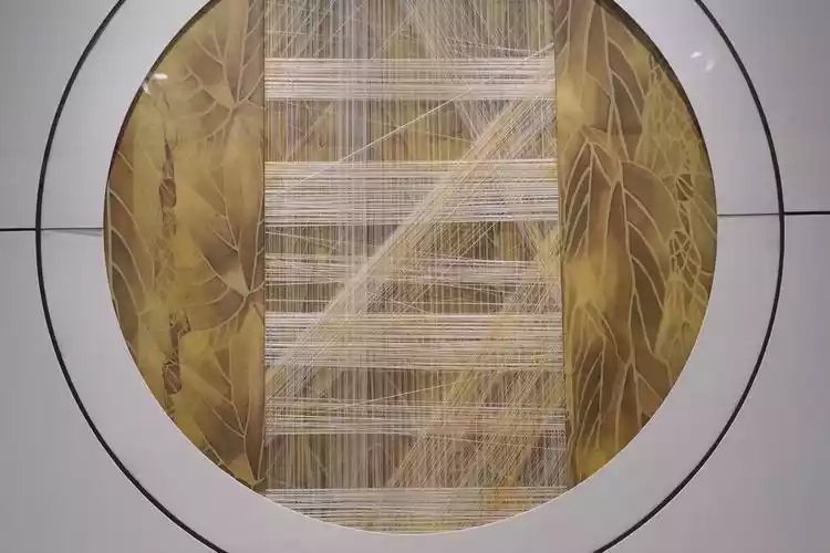The second work, “Thousands of Threads”, uses mulberry silk interwoven on plexiglass, forming an intricate network image that echoes the concept of the contemporary Internet.