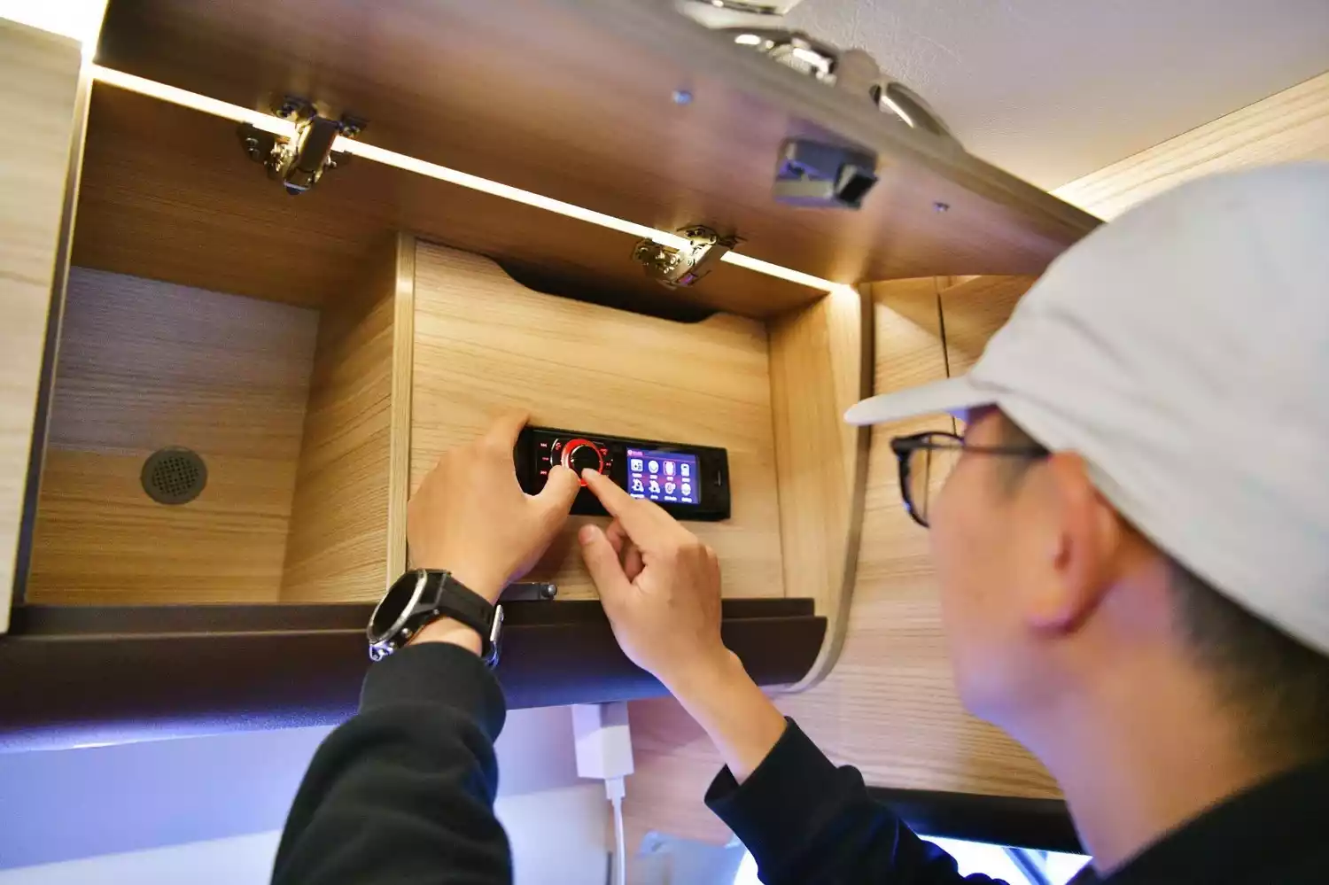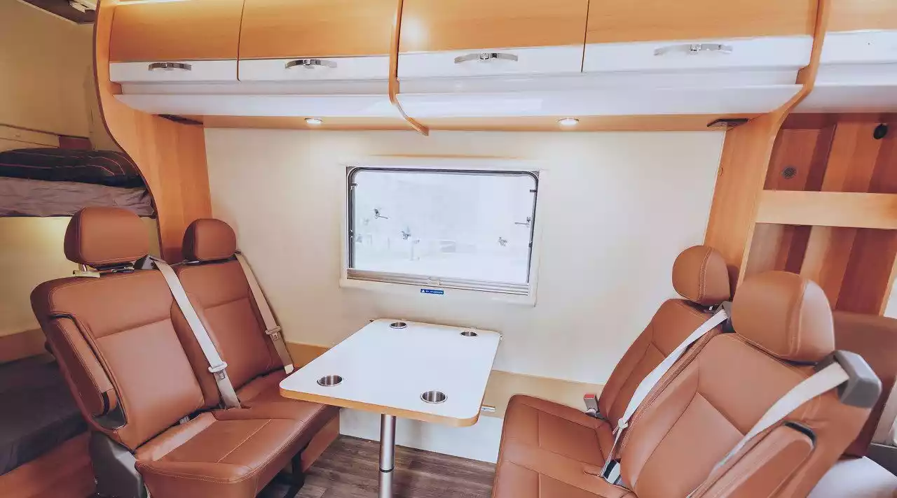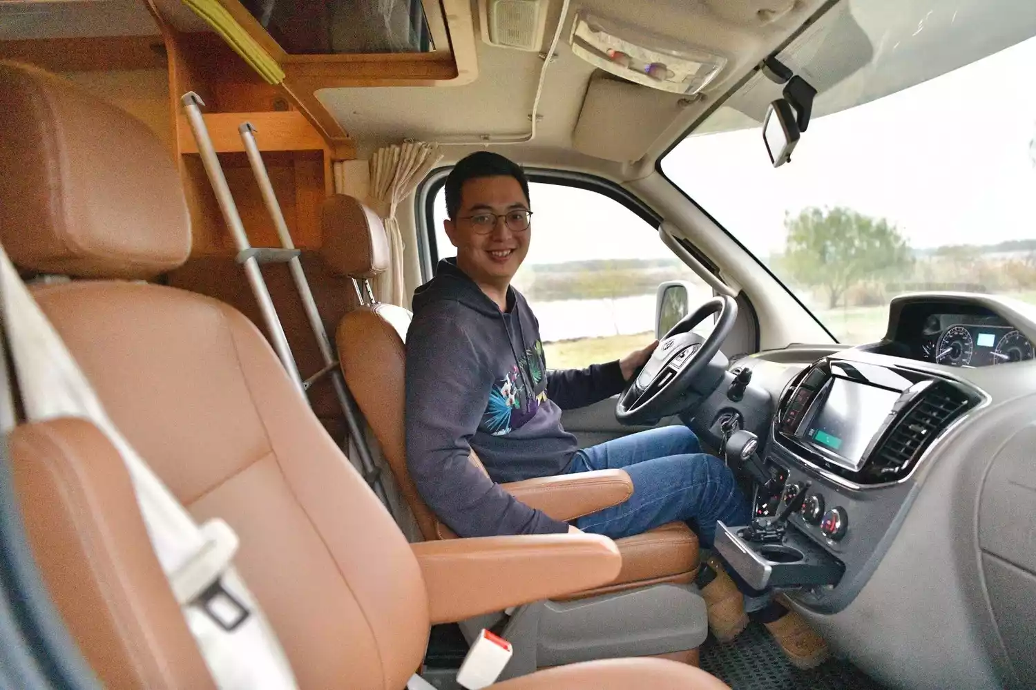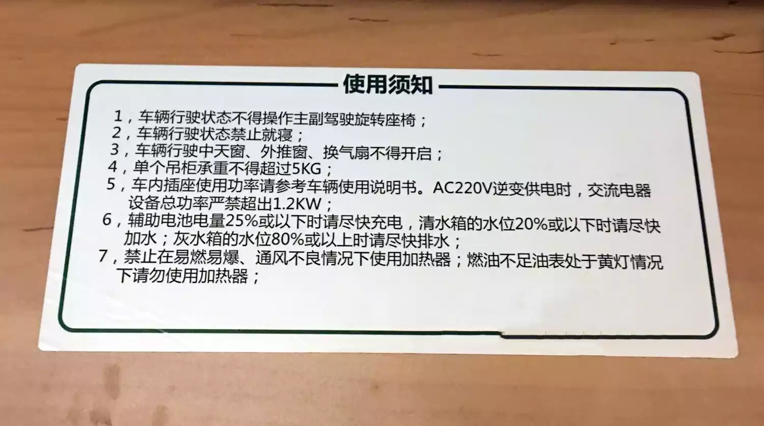 For safety reasons, you must fasten your seat belt and sit in your seat while the RV is driving!!! You are not allowed to lie on the bed or walk around at will.