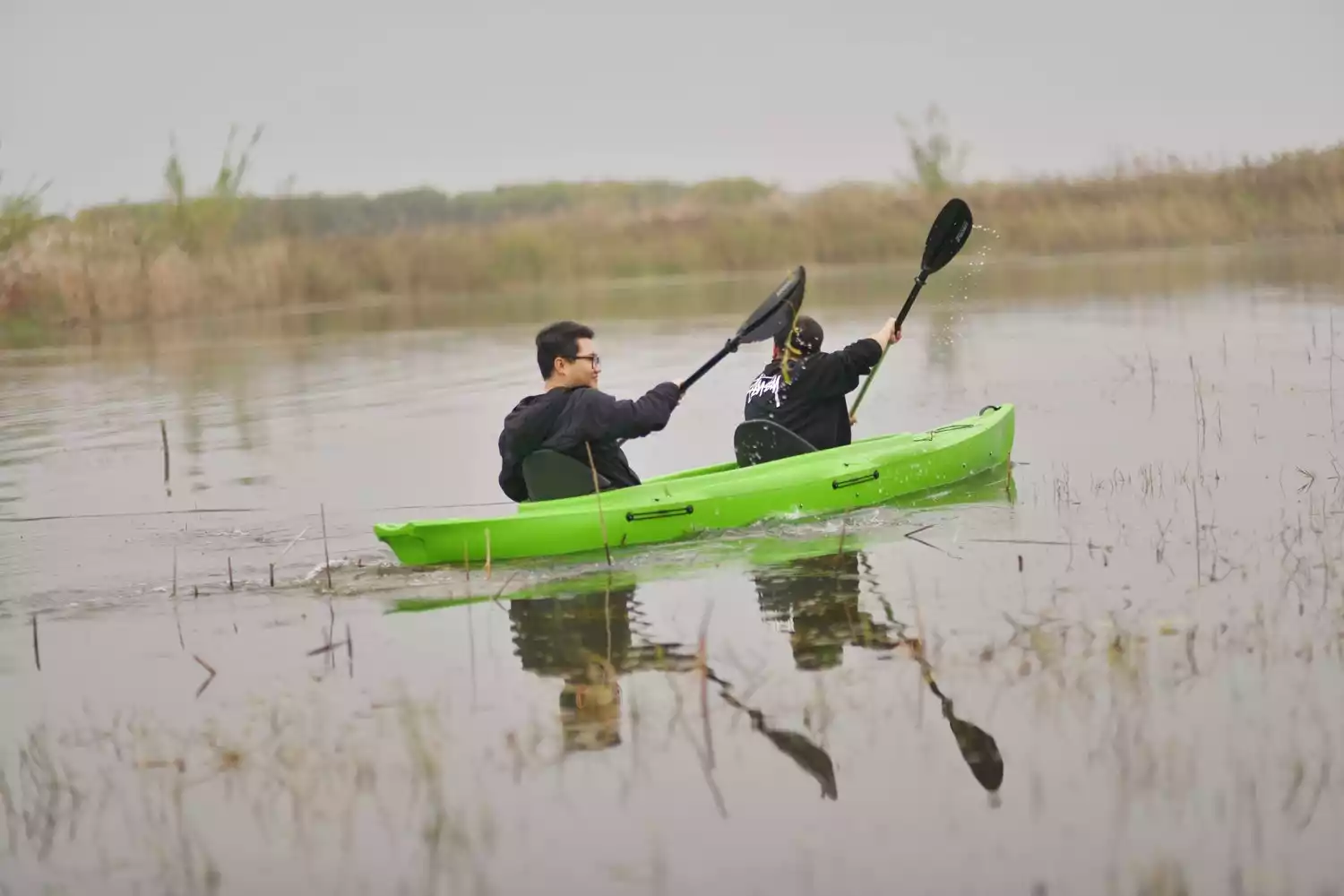 We set up camp in the northern part of the scenic area, away from the crowds of regular tourists, in a private and peaceful area. In late autumn, the reeds by the lake are particularly lush, and we enjoy being gently surrounded by the beige world.