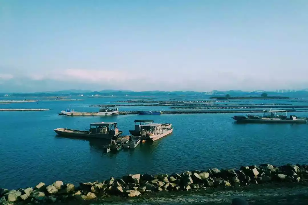 When you come here, you can see magnificent oyster racks on the sea, sometimes connected together, and oyster farmers doing breeding operations on the oyster racks.