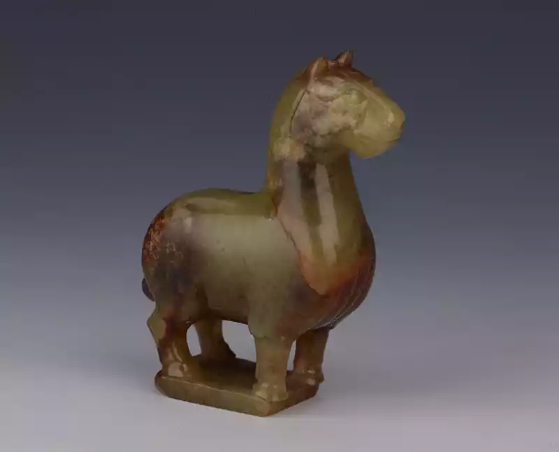 This Hetian yellow jade, so rare it can be grasped, makes the horse carved from it appear lifelike. Its form and movements are remarkably graceful. Due to its age, the jade horse has been stained with vibrant red, creating a stunning interplay of red and yellow. This small exhibit is considered a "treasure" of the Confucius Museum primarily because its unearthed location is associated with the Silk Road, bearing witness to its prosperity. Therefore, in addition to its aesthetic value, it possesses inestimable cultural heritage value.