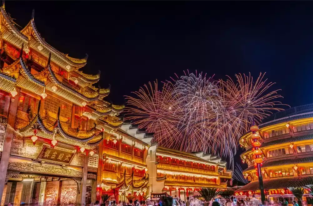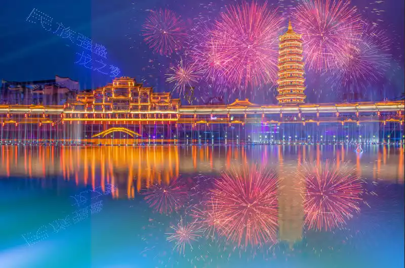Enjoy the 35,000-square-meter super-large "Taihu Ancient Town Water Dance Show" and "Fireworks Show"