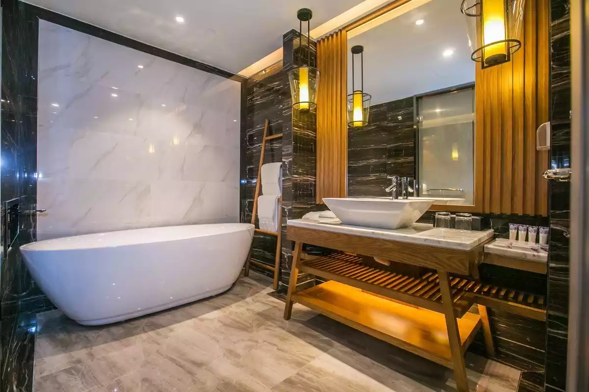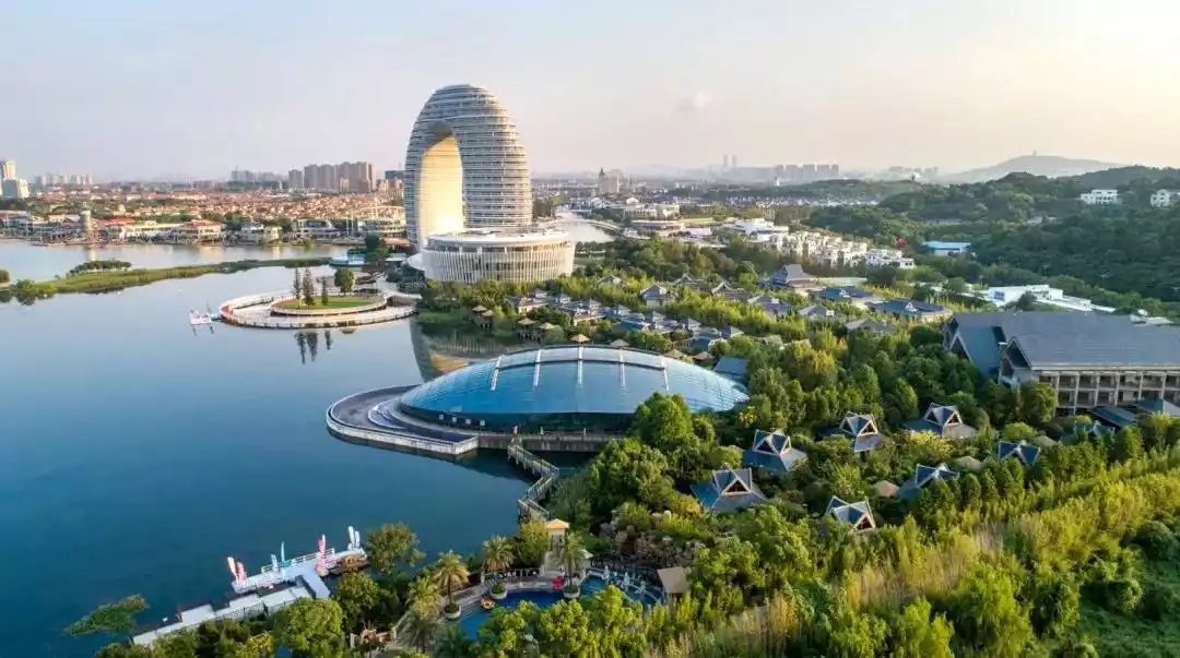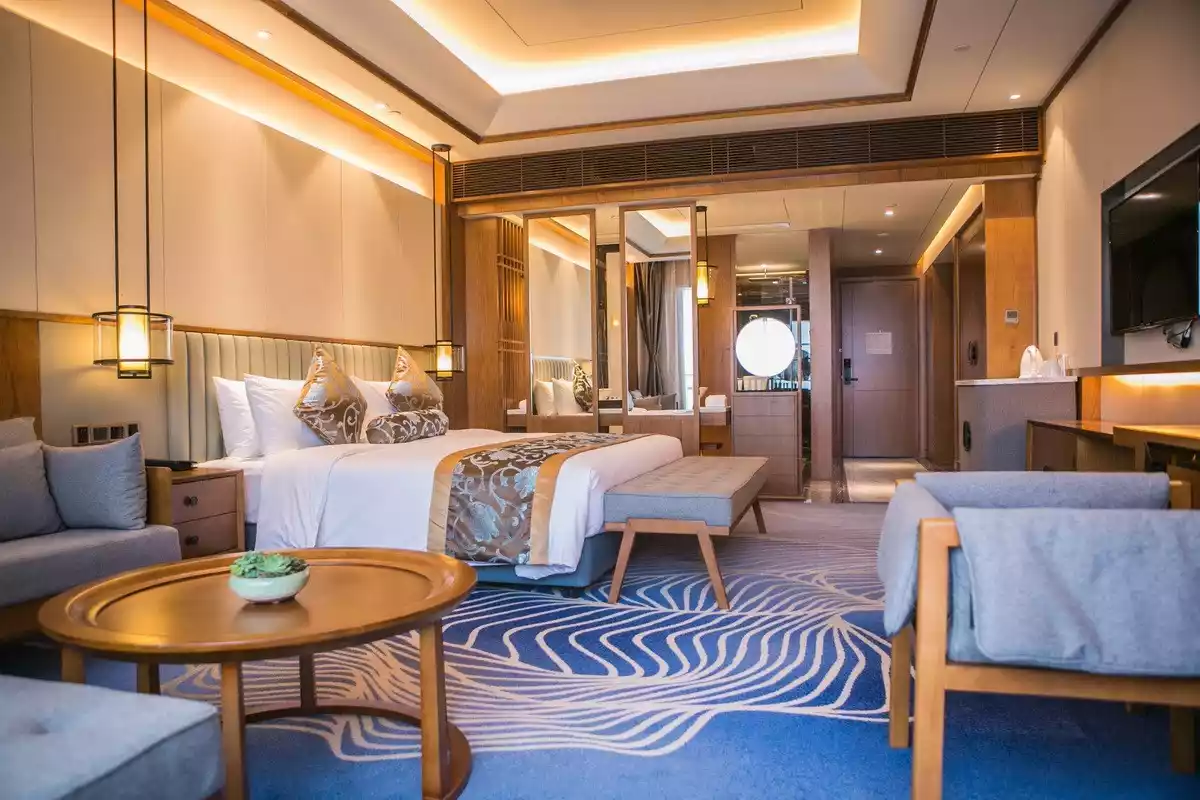 Over 50 square meters of spacious and comfortable space, this is Dragon Dream's most affordable luxury hotel. It boasts its own shopping mall and a White Tiger Garden in the lobby. Lake view rooms offer stunning views of Taihu Lake, wetlands, and mining pits.