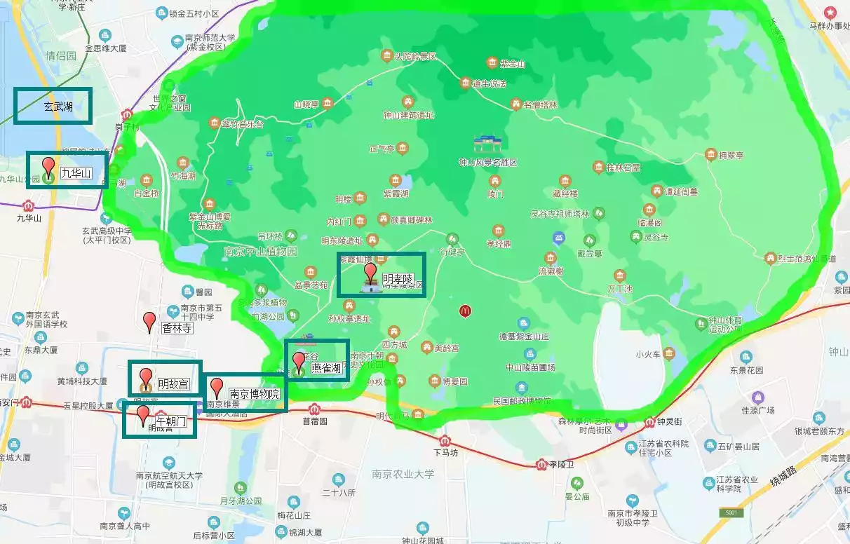 Ming Xiaoling Mausoleum, Xuanwu Lake, Jiuhua Mountain, Ming Palace, Yanque Lake, Wuchao Gate, Nanjing Museum