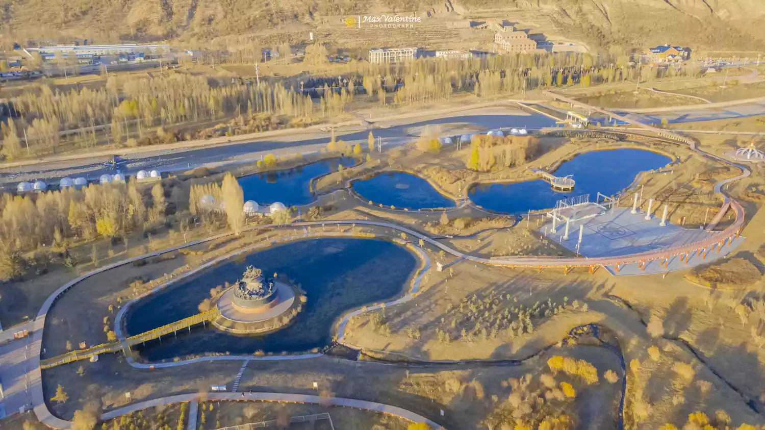 The water comes from the snow and glaciers of the Qilian Mountains, which flows into the desert through underground faults. The water overflows the ground and forms desert lakes.