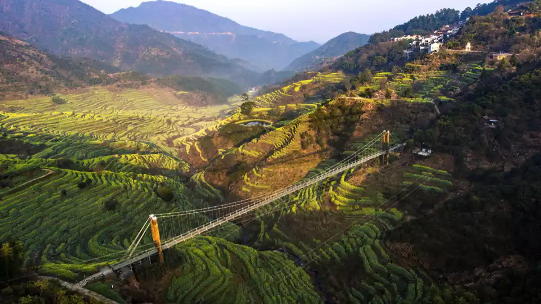 In addition to these great places to view rapeseed flowers, if you take the northern route, Chaguan Village is also worth a visit. There is an ancient bridge in Chaguan Village - Jijiu Bridge. The scene of an old man carrying a hoe and leading a cow across the bridge is one of the representative scenes of Wuyuan.