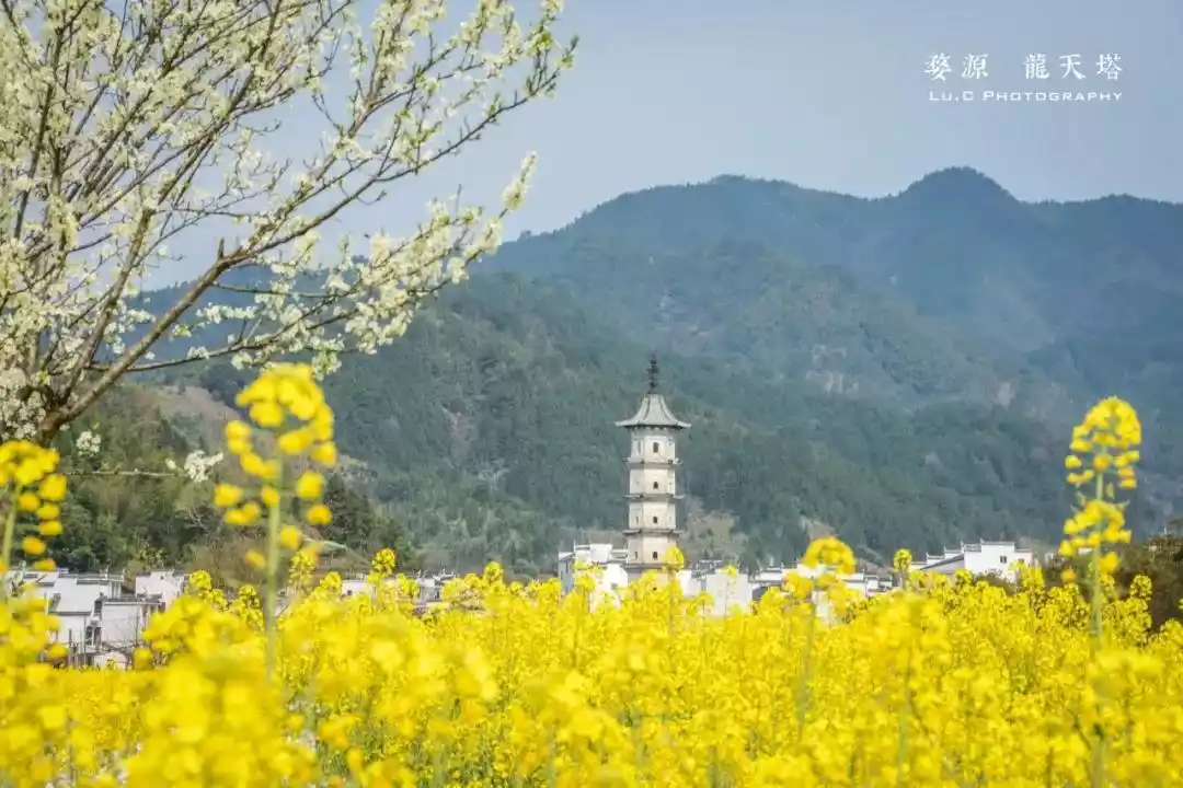 Fengshan Longtian Pagoda is located in Fengshan Village, Zheyuan Township in the north. It was built during the Wanli period of the Ming Dynasty. Iron wind chimes are hung on the eaves of each floor. Whenever the wind blows, the chimes ring sweetly. The antique pagoda stands in the golden sea of rapeseed flowers, like a dignified girl. It is a classic check-in point on the northern line of Wuyuan. You can also climb the tower and look out over the magnificent sea of rapeseed flowers.