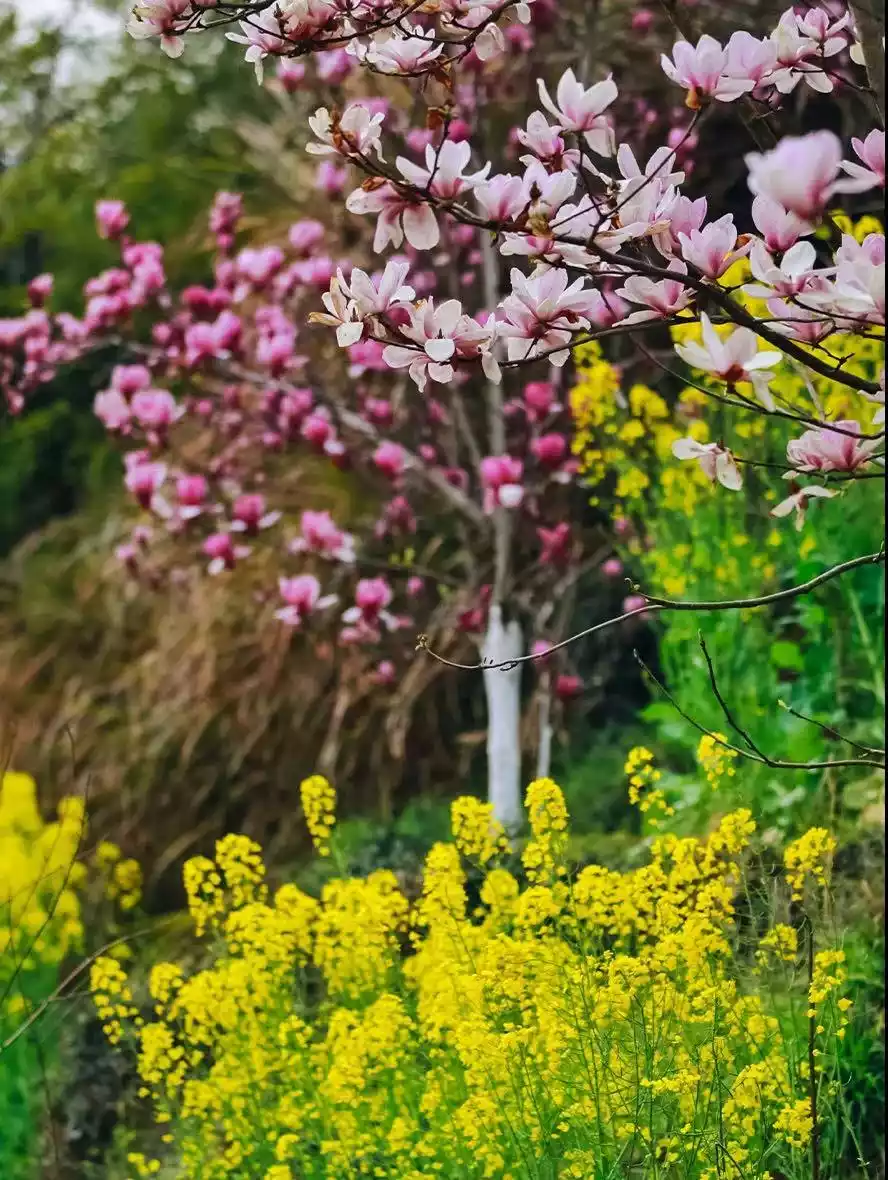 In addition to the fields of rapeseed flowers, there are several thousand-year-old trees in the village. The pear blossoms, magnolias and peach blossoms in front of and behind the houses bloom one after another every spring. It is truly "ten miles of flat land and thirty miles of gardens."