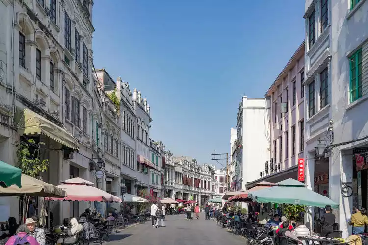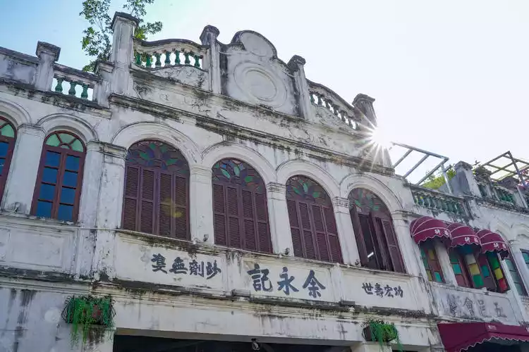 Besides experiencing Haikou's unique lifestyle and historical charm, this spot is also highly recommended for photography. The ancient arcades, arranged in a staggered pattern, exude an elegant and refined Western style. Wearing a retro cheongsam and posing effortlessly are highly photogenic. Overlooking the old street, the colorful arcades line the streets, and the vehicles circulate freely, creating a cinematic experience.