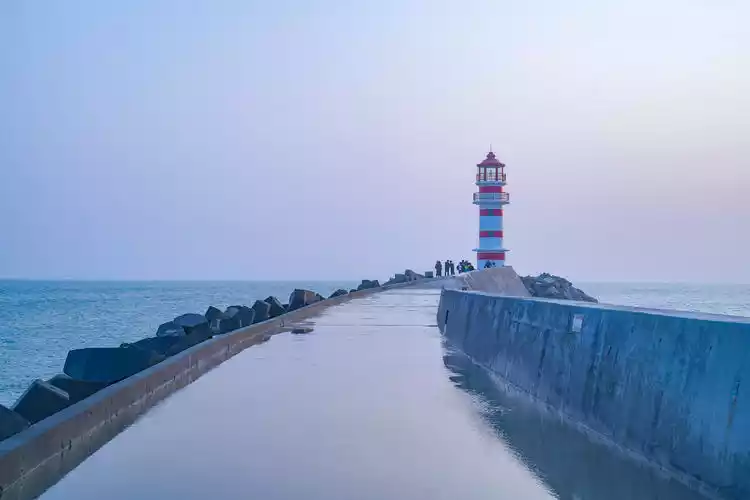This place is very suitable for daydreaming. There are small lighthouses on the sea, forming a beautiful landscape, which complements the buildings in the distance and perfectly interprets modern beauty.
