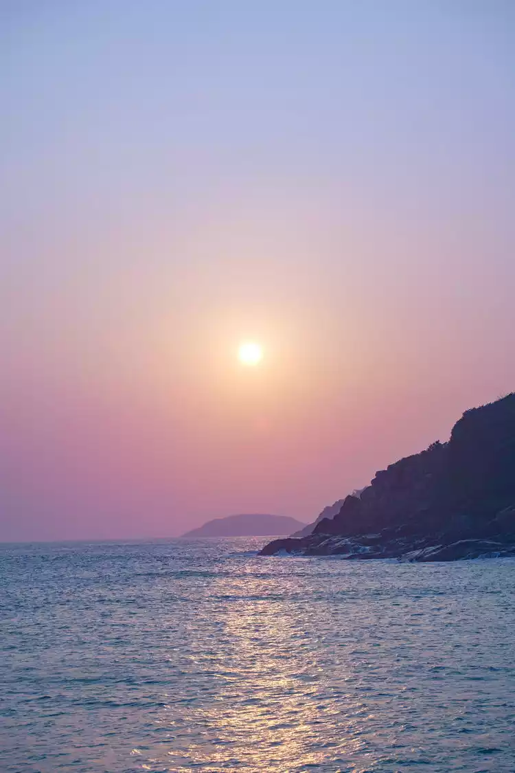 Looking out at the sea from afar, a neon sunset hangs above the sea. The sky is filled with red clouds, and pink, orange and light purple blend into each other. There is a kind of beauty that makes people want to speak but stop, and romance comes uninvited.