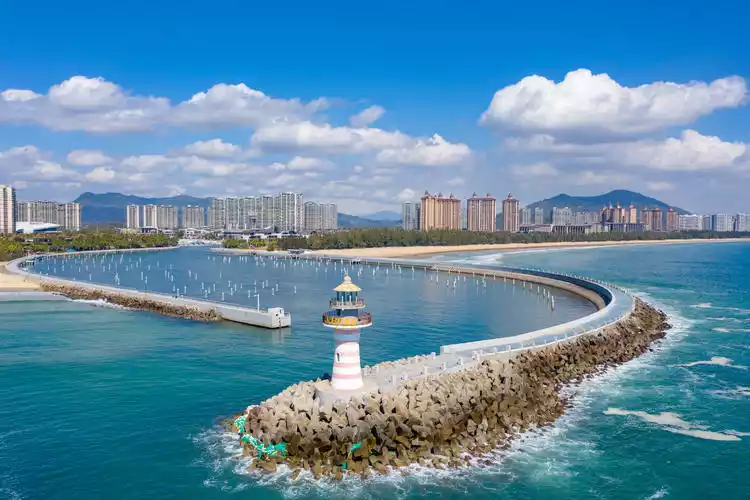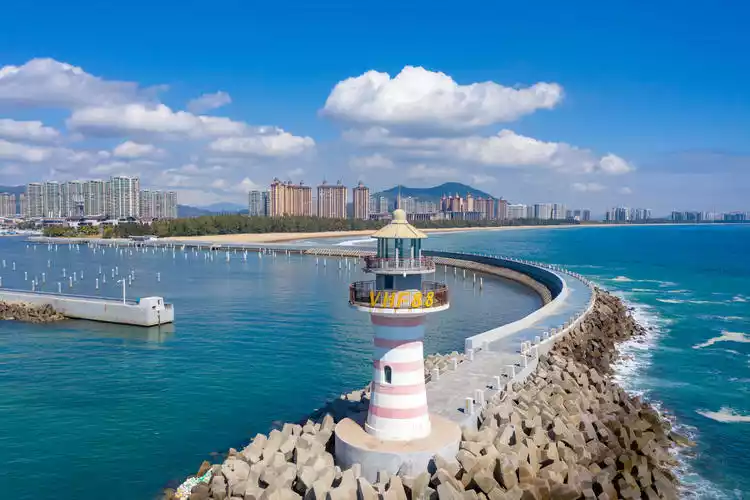Compared with the natural and fresh lighthouse of the Shenzhou Peninsula, the Lingshui Qingshui Freedom Lighthouse is more modern and beautiful. It is surrounded by high-rise buildings, ships are moored, and transportation is more convenient.