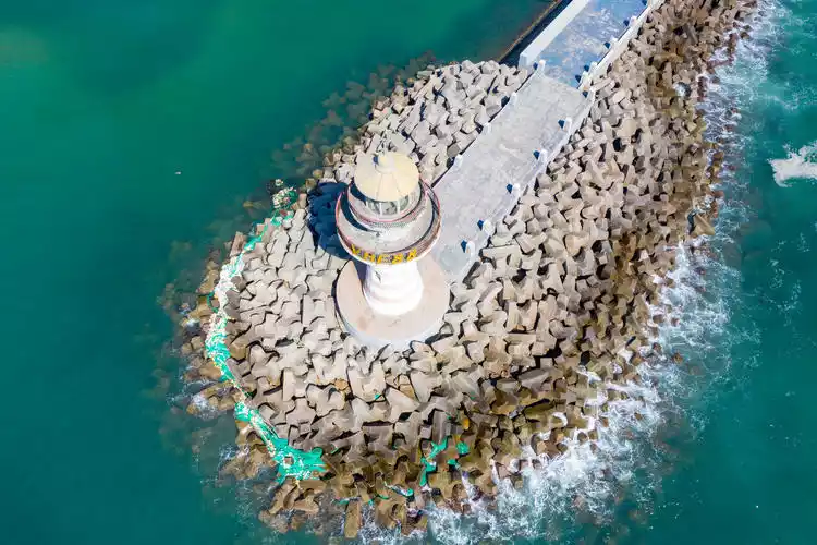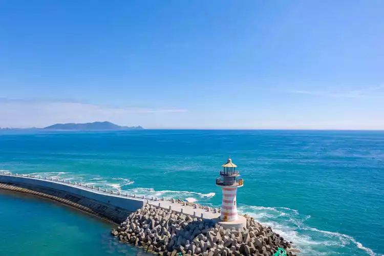 At the end of the seawall, a lighthouse stands quietly. The tower body has faded slightly due to the baptism of wind and rain. The lighthouse has an observation deck. Looking out from the railing, you can see the blue sea and blue sky, which is very beautiful.