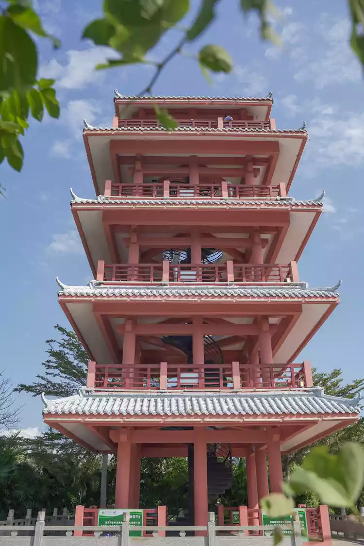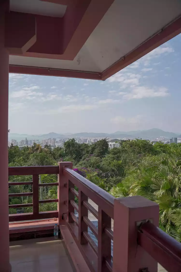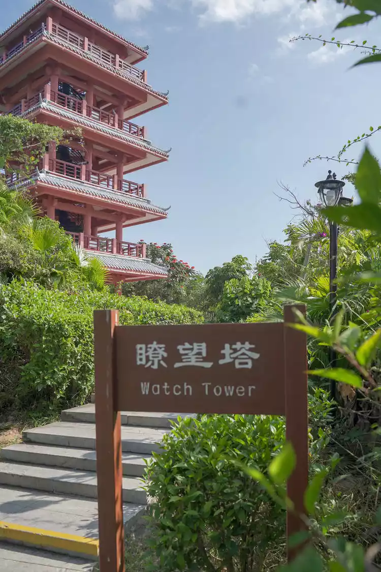 This is a unique viewing platform with a broad view, from which you can take in the beautiful scenery of Sanya. The red paint on the railings has peeled off and is slightly mottled. The breeze blows against your face, and you feel infinite emotion.