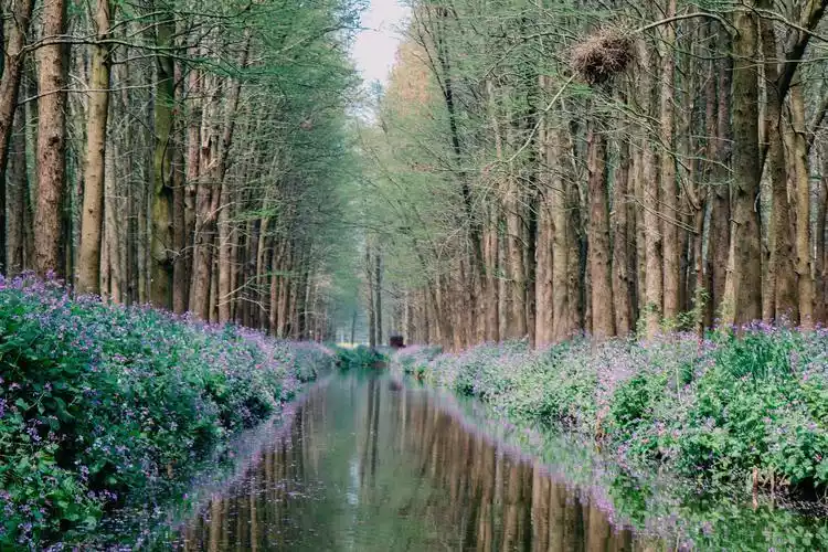 Take a raft trip to appreciate the beautiful scenery of the water town where "there is water in the forest - Metasequoia and fish jumping; there are birds in the forest - treetops, beneficial birds gathering and hundreds of birds singing", and feel the ecological elegance. The most beautiful thing here in spring is probably the February orchid on the water, a dreamy purple fairy tale world.