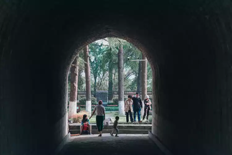 The Meridian Gate, the southern gate of the Ming Dynasty's Forbidden City in Nanjing, was located at the meridian, hence the name. It is now located in Nanjing's Wuchaomen Park, across from the ruins of the Ming Dynasty's Forbidden City, the site of the actual imperial palace. Today, though its heyday has faded, the busiest time of year is around April, when the hydrangeas bloom, attracting photographers, tourists, and strollers alike.