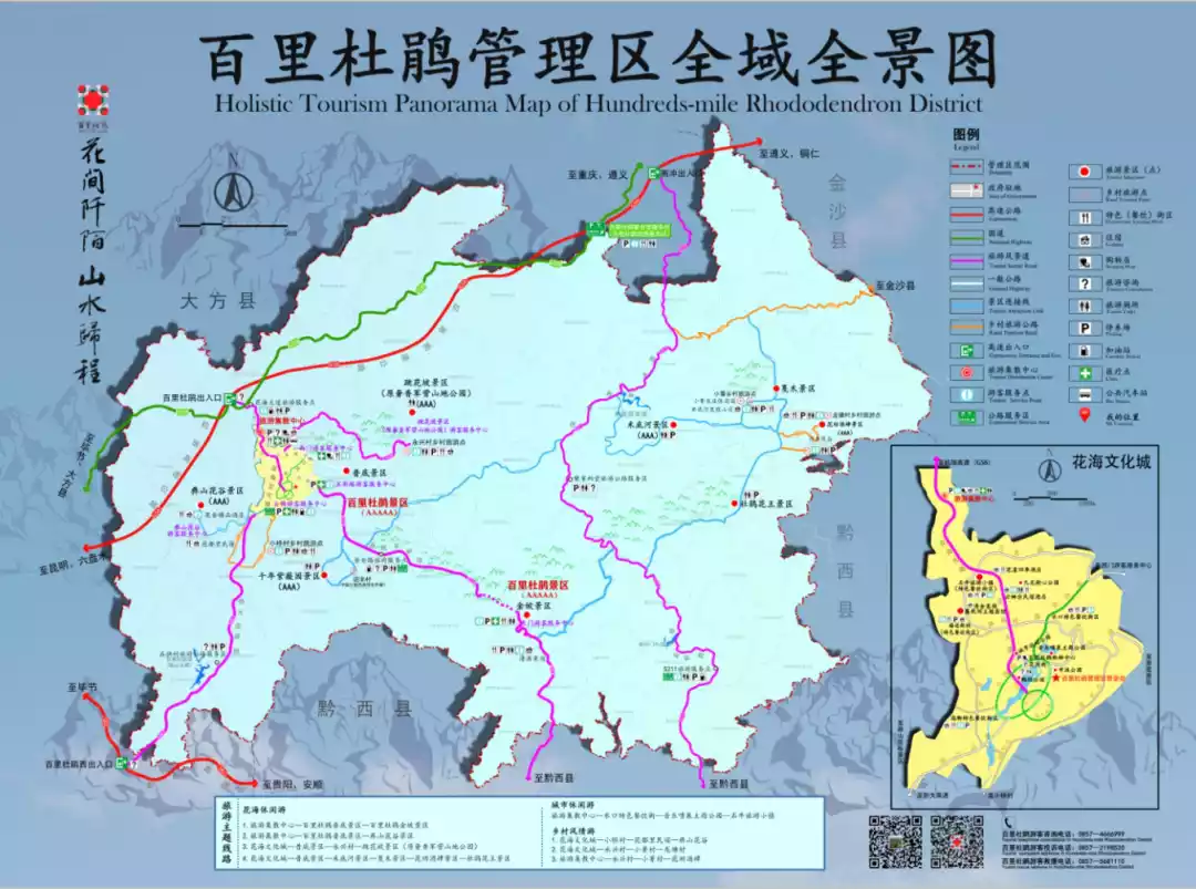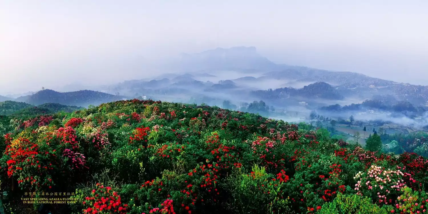 Guizhou's unique acidic soil and altitude are very suitable for the survival of rhododendrons. Bijie's Baili Rhododendron Scenic Area has a pristine rhododendron forest belt that stretches over 50 kilometers and is 1 to 5 kilometers wide, totaling 125.8 square kilometers, which is the largest in the world.