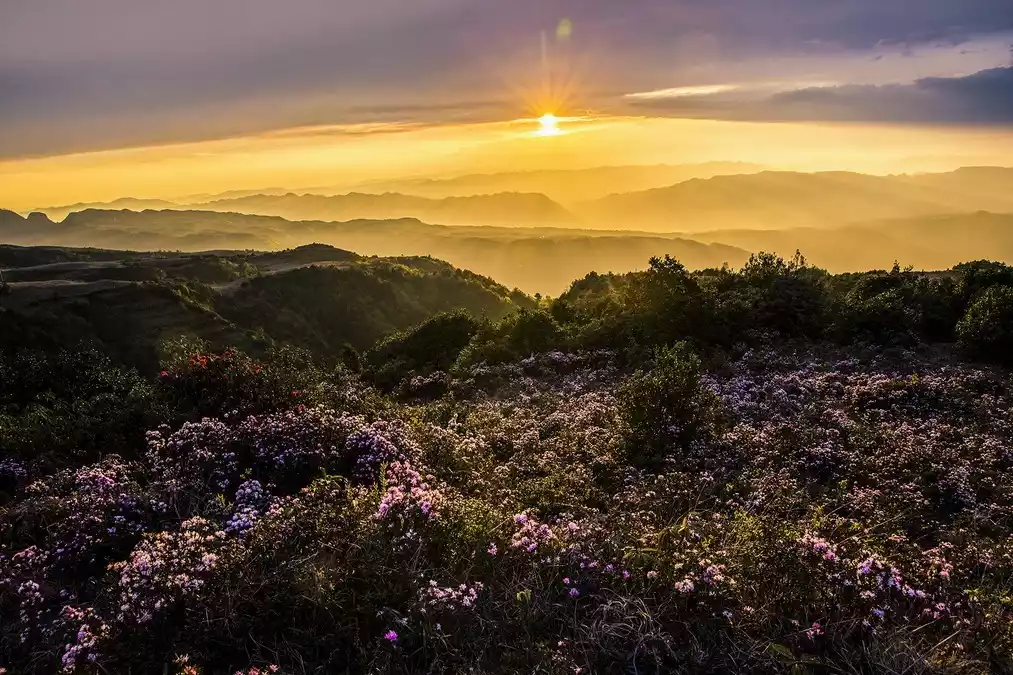 Shuhua Peak is the highest peak in Pudi Scenic Area. From here you can overlook all the flower peaks and walk into the flowers, which is like a dream world. The photography group specially arranged to shoot the sunrise here.