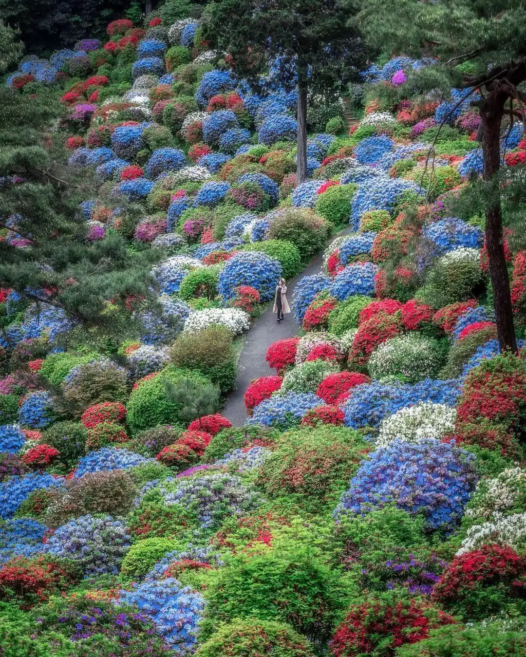 But in the world, Japan is the most famous azalea viewing spot. In the 1,300-year-old Shiofune Kannon Temple in Ome City, Tokyo, more than 20,000 spherical azaleas bloom in succession every year.