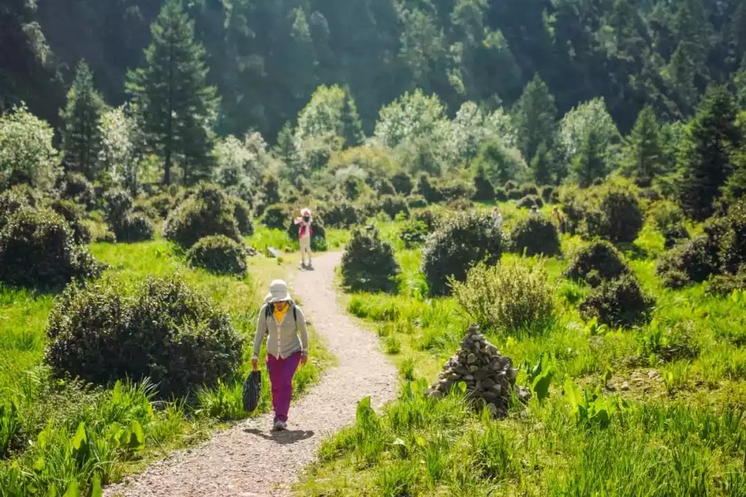 The altitude here is about 3,900 meters, it is rarely visited by people, and it is surrounded by virgin forests. Walking along the dirt road, you can see plateau wild flowers all over the mountains and snow-capped spruce reaching into the sky.