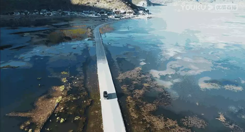 The first episode begins with a tourist bus driving over from an underwater highway. The lakes on both sides are very close to the highway. From a distance, the car seems to be driving on the water. The lake surface is like a mirror, clearly reflecting the clouds in the sky. This is Napahai in Shangri-La.