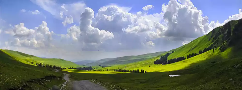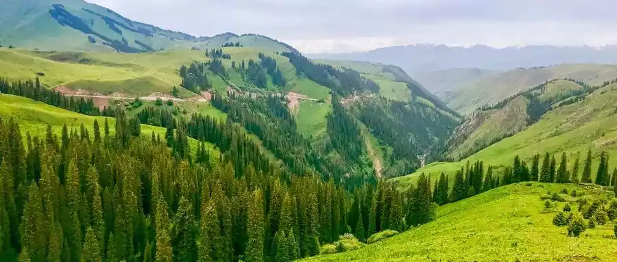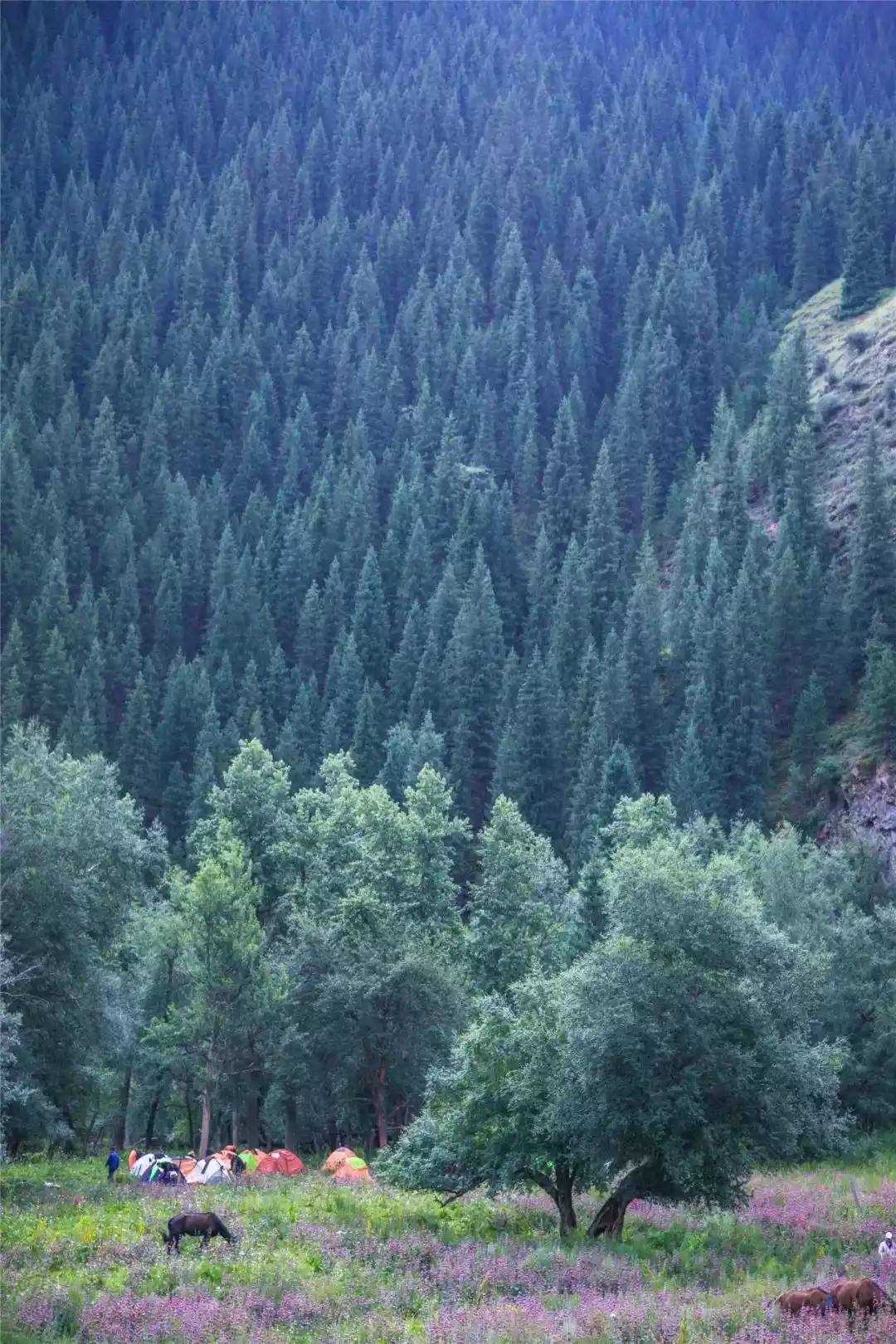 High mountain grasslands, vast expanses of fir and spruce trees in the Ili River Valley, low-lying creeping pines, the perpetual glaciers of the two Daban passes, the pristine habitats of animals, and the rich diversity of natural layers...