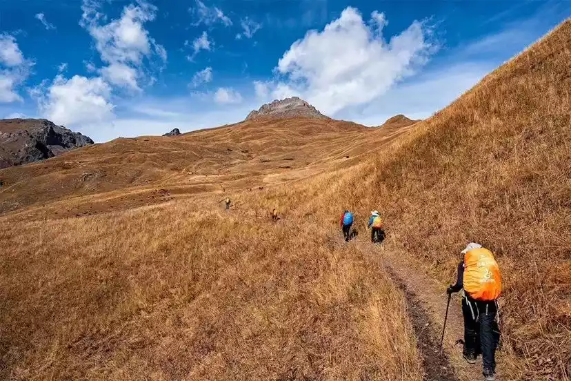 The total length is about 90 kilometers, and it requires crossing five passes over 3,000 meters, the highest of which is a simple pass at 4,125 meters.