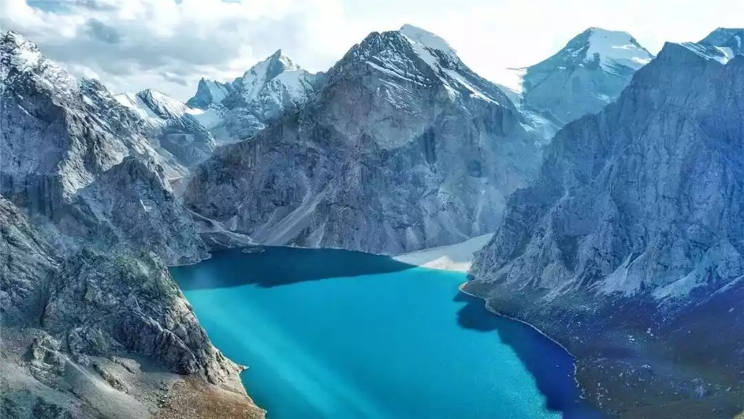 Amidst the vast ancient road, the beautiful Tianhu Lake is crystal clear and vibrantly colored, like a spirit that has fallen into the mortal realm, hidden in its innermost chambers. Ulan Sadek Lake, shaped like a round mirror, was later split in two by a landslide, forming its current bow shape.