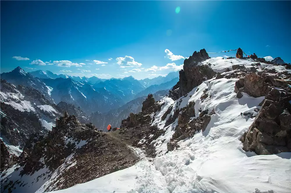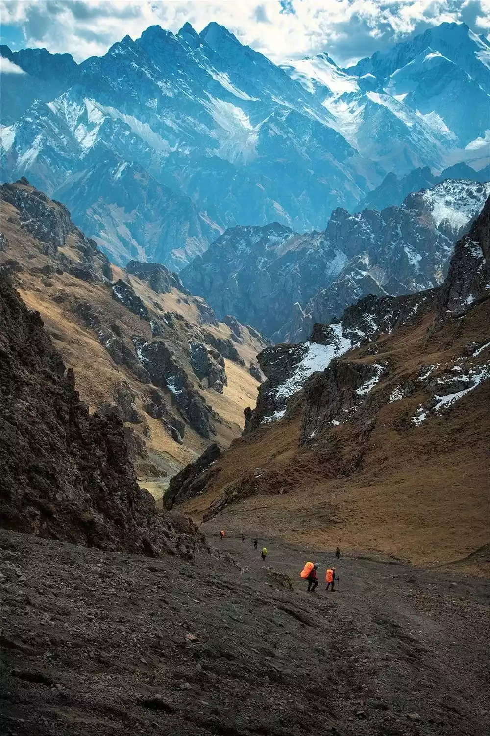 The entire journey is 200 kilometers, crossing 9 passes of nearly 4,000 meters, with a total elevation gain of nearly 10,000 meters, and wading through countless glaciers.