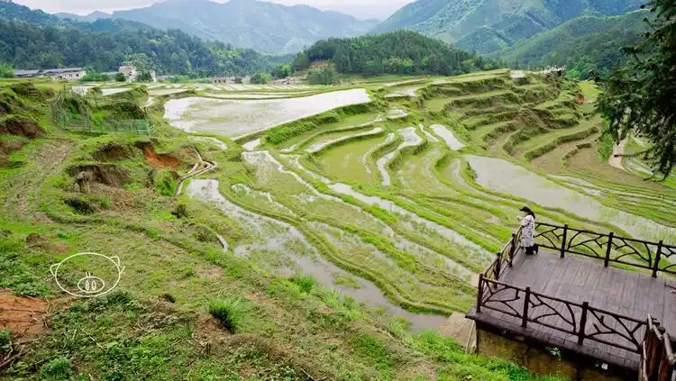 The Oujia Rice Terraces are located in Taibao Town, Lianshan County, Qingyuan City, Guangdong Province, at the foot of Dawu Mountain, the highest peak in the Lianshan Mountains, known as the "Roof of Lingnan Region of Guangdong." The Oujia Rice Terraces are spread out in an M-shaped pattern around Oujia Village. The vast and imposing Oujia Rice Terraces stretch for nearly 3 kilometers. The terraces cascade along the mountainside, forming a beautiful belt. The terrain divides them into two major areas: the east and west sections. The east section, directly in front of and to the right of Oujia Village, is ideal for photographing the sunrise and morning mist; the west section, to the left and directly behind the village, is ideal for capturing sunsets.