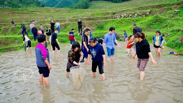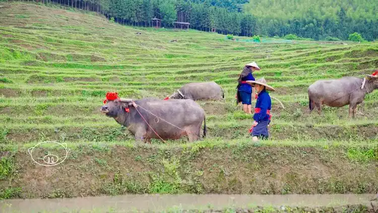 Beside the fish pond, auspicious oxen are plowing the fields, and there are demonstrations of paddy field oxen plowing, harrowing, and transplanting rice. From April 17th to May 31st, the terraced fields provide long-term farming projects such as plowing, harrowing, and transplanting rice for tourists to experience and take photos for free. You can also change your clothes to experience the fun of farming.