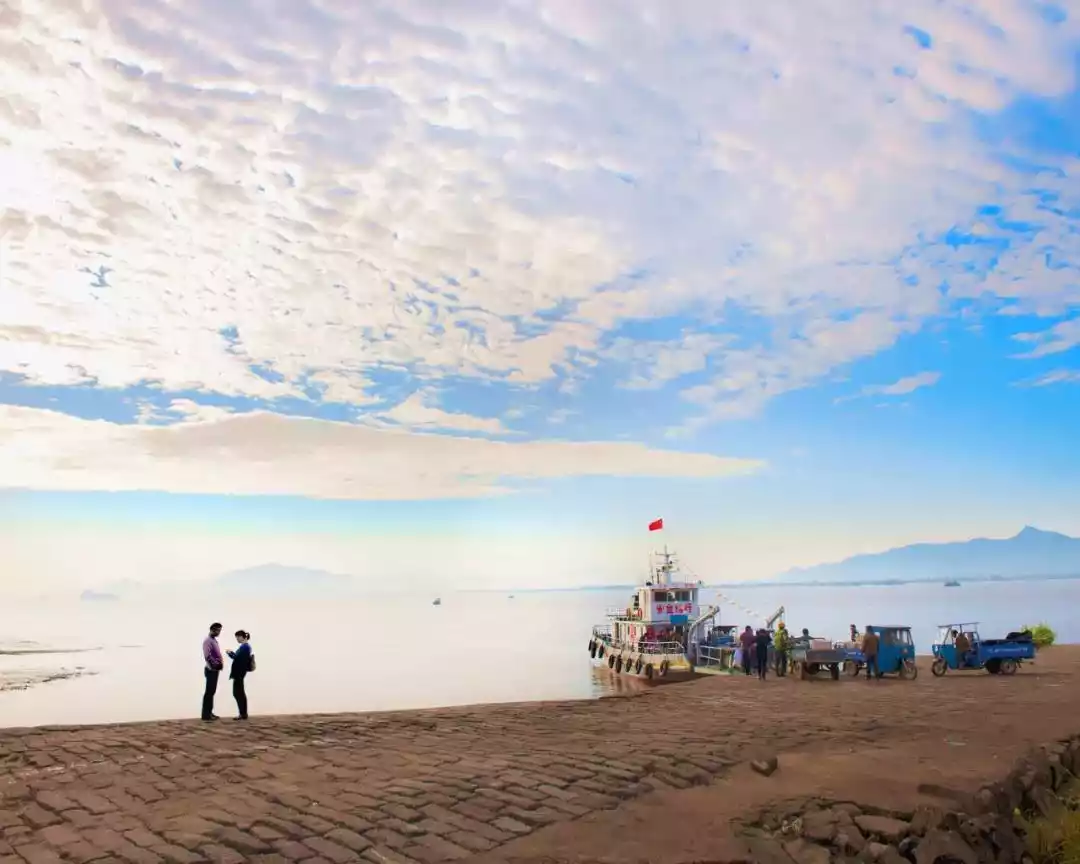 Although the island is sparsely visited by tourists, transportation to the island is very convenient. It only takes a few minutes to arrive by ferry from Fangshan Wharf. If you find a knowledgeable fisherman to lead the way, you may even be able to experience the childhood fun of picking up treasures on the mudflats.